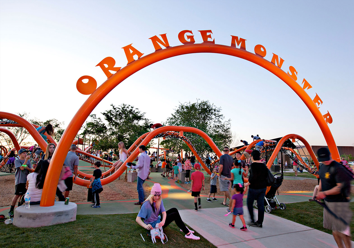 The Eastmark Great Park is the home of the Orange Monster, a fantastic family destination playground in the Eastmark Community of Mesa, AZ.